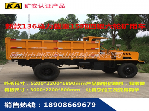 新款載重15噸礦用四驅(qū)車,**大載重爬坡25度,采用分時四輪驅(qū)動氣動**,后驅(qū)四驅(qū)輕松轉(zhuǎn)換,配備136馬力增壓發(fā)動機,12檔帶高低速變速箱,堅固耐用,尺寸可根據(jù)巷道環(huán)境訂制。柴油機和變速箱直接傳動,動力更強勁,載重量大。
